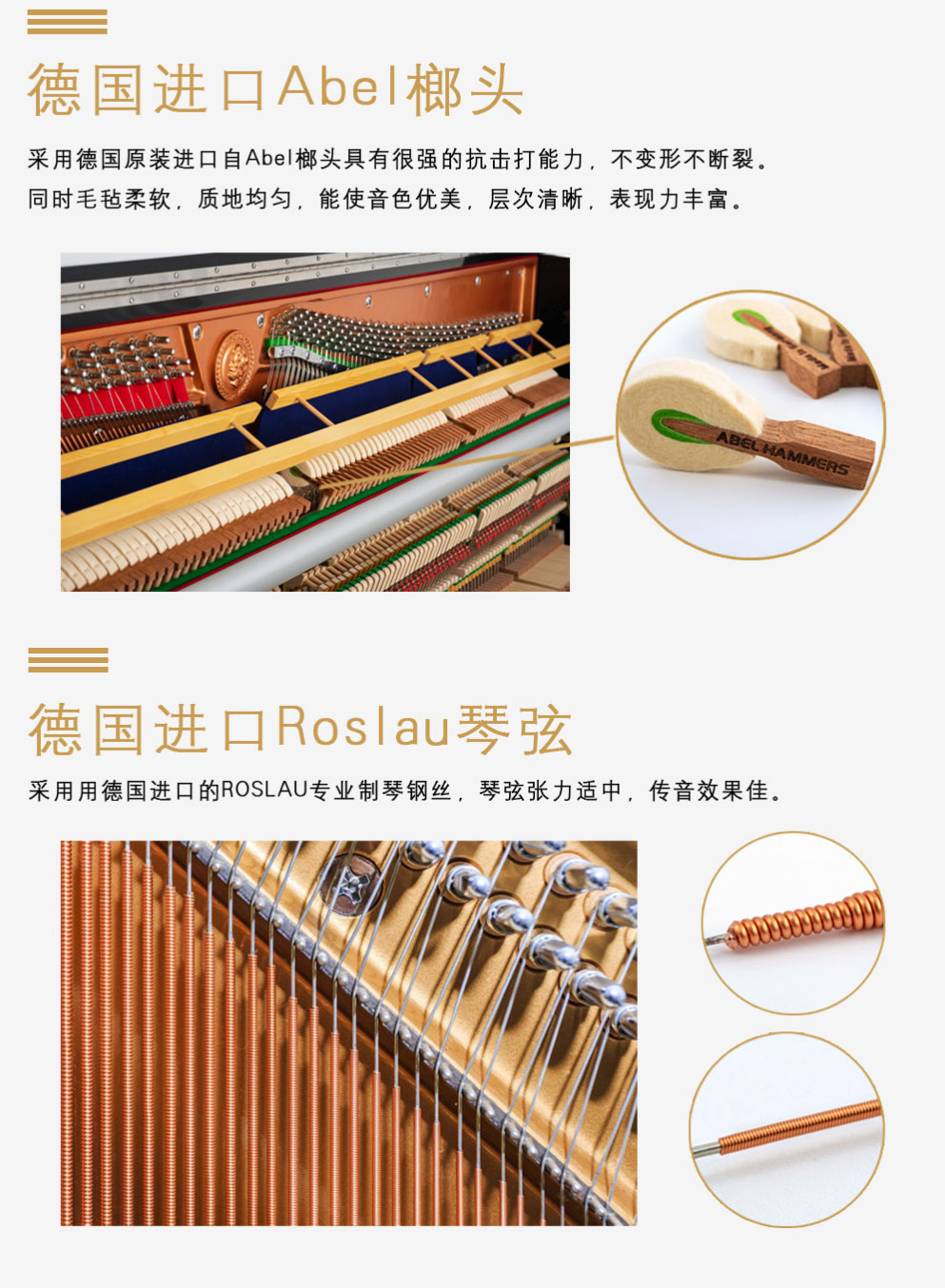 ◆ 琴弦采用德國進(jìn)口的Röslau(羅斯勞)專業(yè)制琴鋼絲